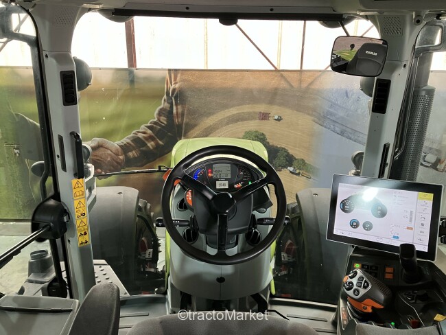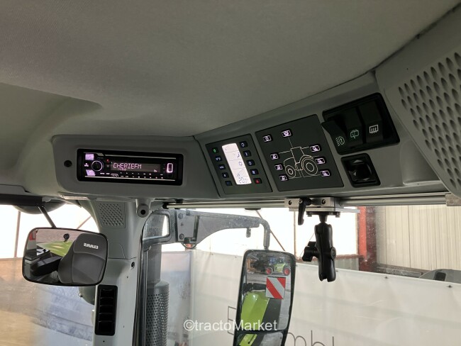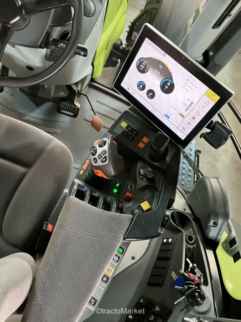 AXION 870 CMATIC S5 SUR MESURE, Terminal CEBIS avec fonction tactile, CMATIC avec 2 mémoires de régime moteur + CSM, CEBIS, ELECTROPILOT sans inverseur main droite, Freinage hydraulique avec freinage pneumatique, Pompe LS 150 L/min, 4 distributeurs électro-hydrauliques proportionnels, 2 sorties hydrauliques AV + 1 ret., Transmission à variation continue CMATIC, Vitesse maximale 50 km/h, Pont avant PROACTIV freiné, Prise de force 540 ECO + 1000/1000 ECO tr/min, Puiss. nomin. homol. 284 ch, puiss. maxi. homol. 301 ch, ECE R120, Cabine avec suspension en 4 points, Siège confort, tissu, pivotant et chauffant, à susp. semi-active